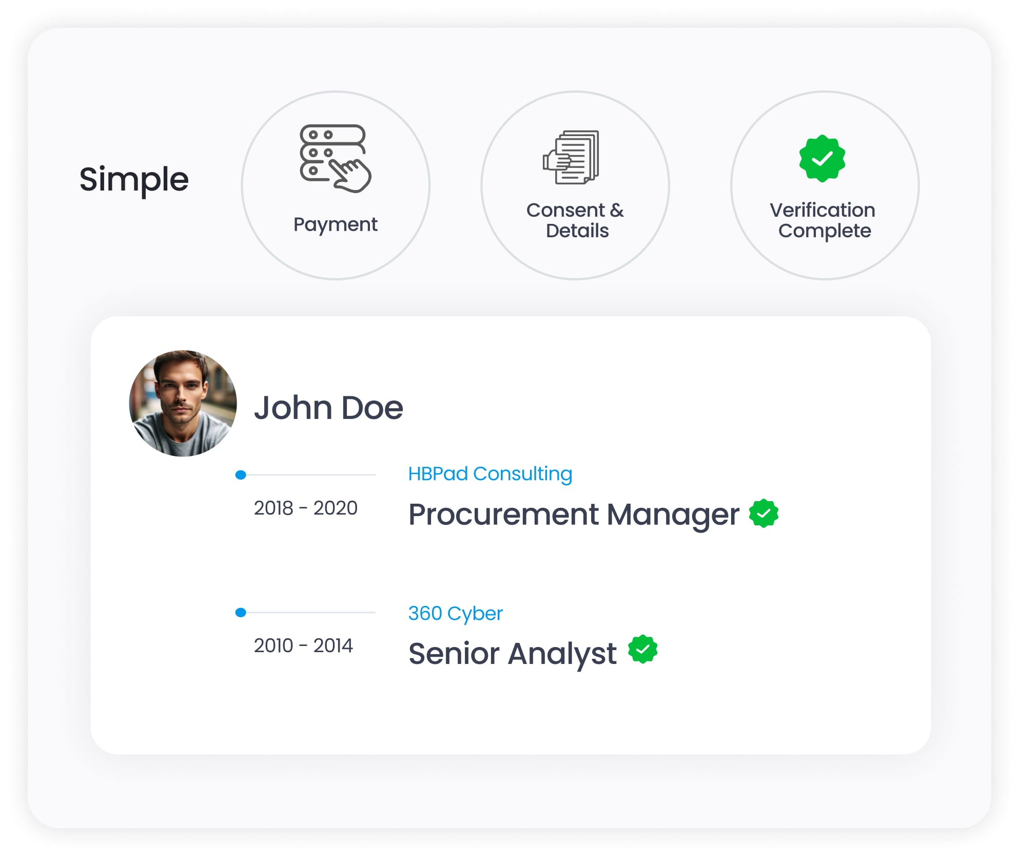 Be it confirming work history, validating skills, verifying educational or certifying qualifications, our process is seamlessness and efficiency. Expertly designed to accentuate your strengths and position you as a standout candidate to potential employers